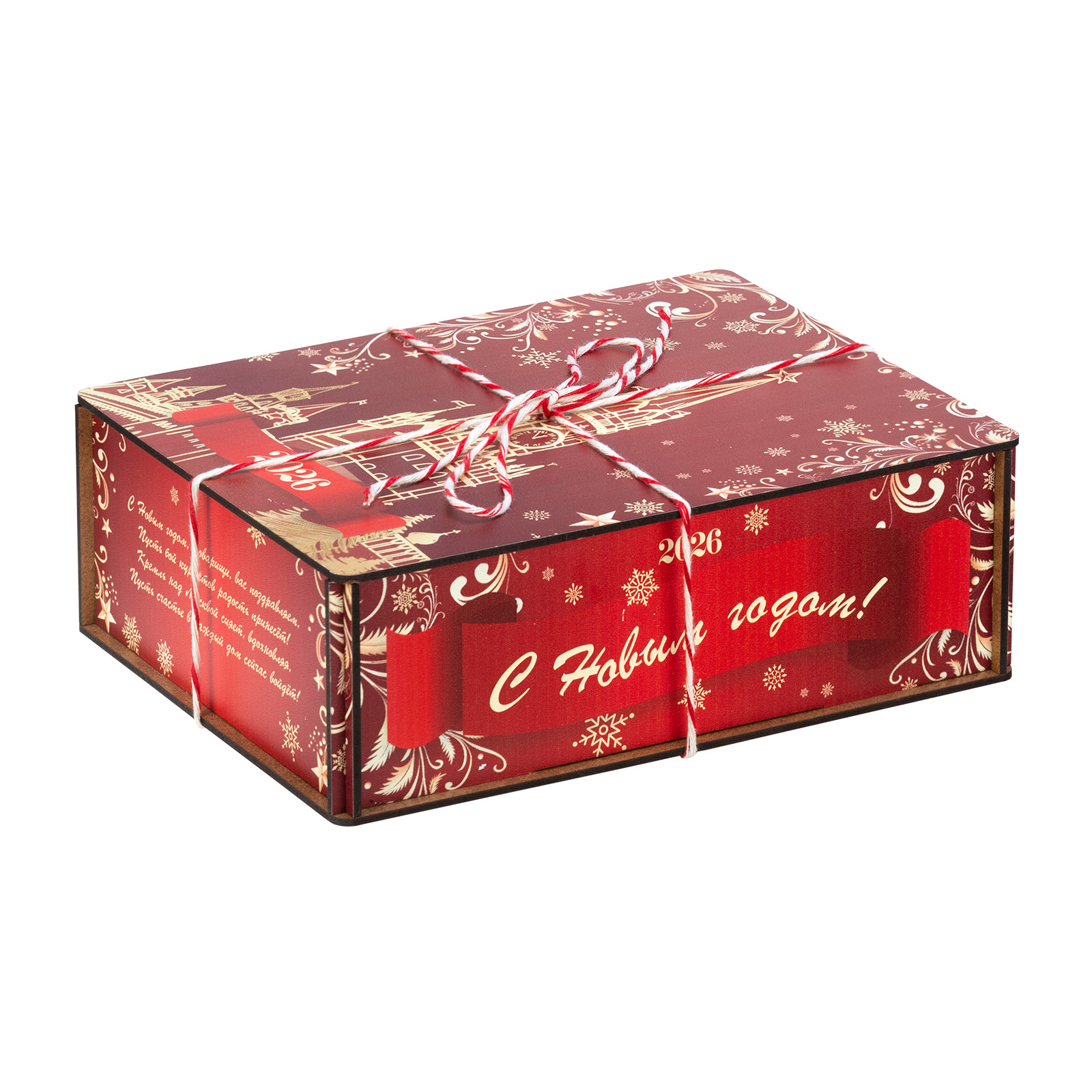 Ищете новогодний сладкий подарок коллеге, педагогу или руководителю? Обратите внимание на подарочный набор “Кремль”, который идеально сочетает в себе солидную красочную упаковку и превосходный вкус кондитерских изделий Подарочная упаковка выполнена из качественного дерева и окрашена в разные оттенки красного цвета. Со всех сторон можно увидеть контрастные узоры и поздравительные надписи, а на крышке изображен один из самых узнаваемых новогодних символов - Кремлевские куранты. В состав подарка входит килограмм разнообразных кондитерских изделий от ведущих кондитерских предприятий и небольшой памятный сувенир в виде символа наступающего года. Такой прекрасный подарок сделает любое новогоднее торжество незабываемым.