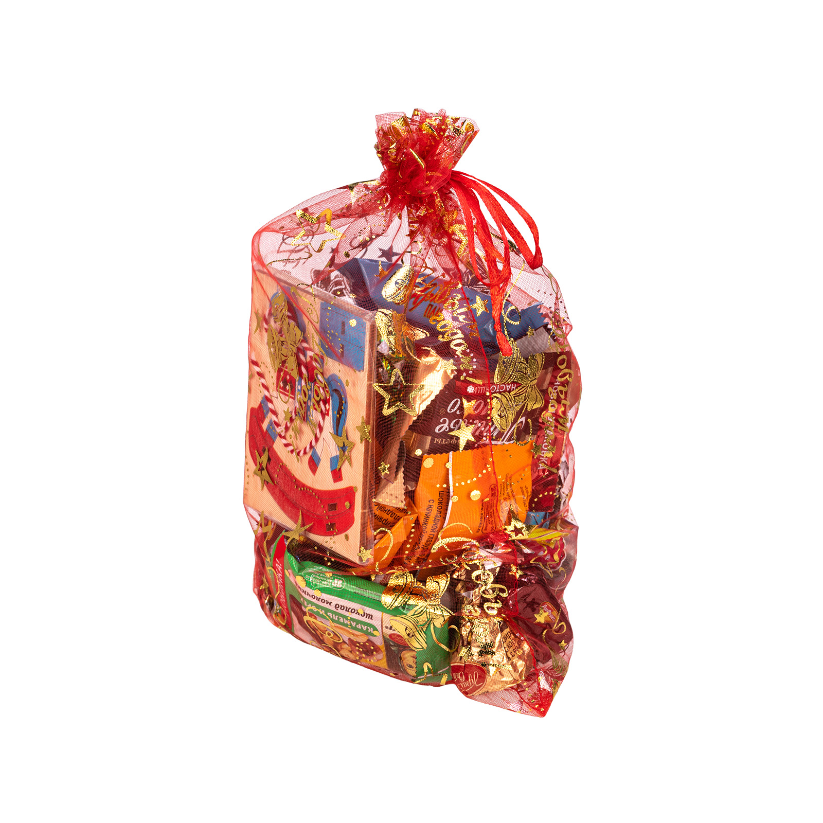 Формула идеального новогоднего сладкого подарка проста: привлекательная яркая упаковка и вкусные сладости внутри! Именно такими качествами и обладает подарочный набор “Колокольчики”! Это ярко-красный текстильный мешочек, украшенный со всех сторон золотистыми звездочками. Сверху он прочно перевязан маленькой аккуратной веревочкой, потянув за которую, вы откроите самый настоящий ларец с сокровищами. В мешочке бережно хранятся отборные лакомства под любые вкусовые предпочтения - даже самый привередливый сластена найдет здесь свой любимый десерт. Также в состав подарка входит небольшой памятный сувенир в виде символа наступающего года. Благодаря ему, праздничное настроение в вашем доме будет царить и после новогодних праздников!